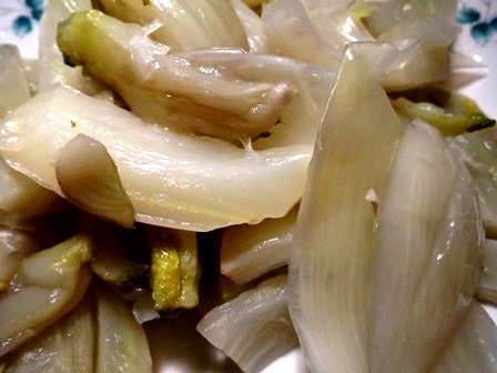 Porre in un tegame antiaderente l’olio e l’aglio intero ( da eliminare alla fine) e quando questo è dorato aggiungere i finocchi tritati a coltello…
